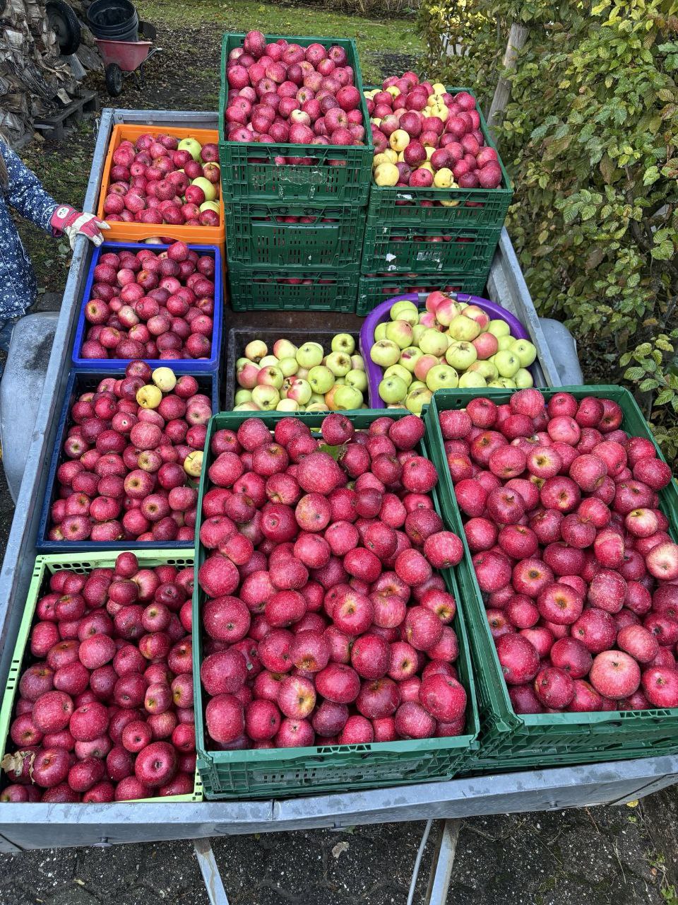 Nun haben wir einen Jahresvorrat an selbstgemachtem Apfelsaft, den wir stolz genießen.